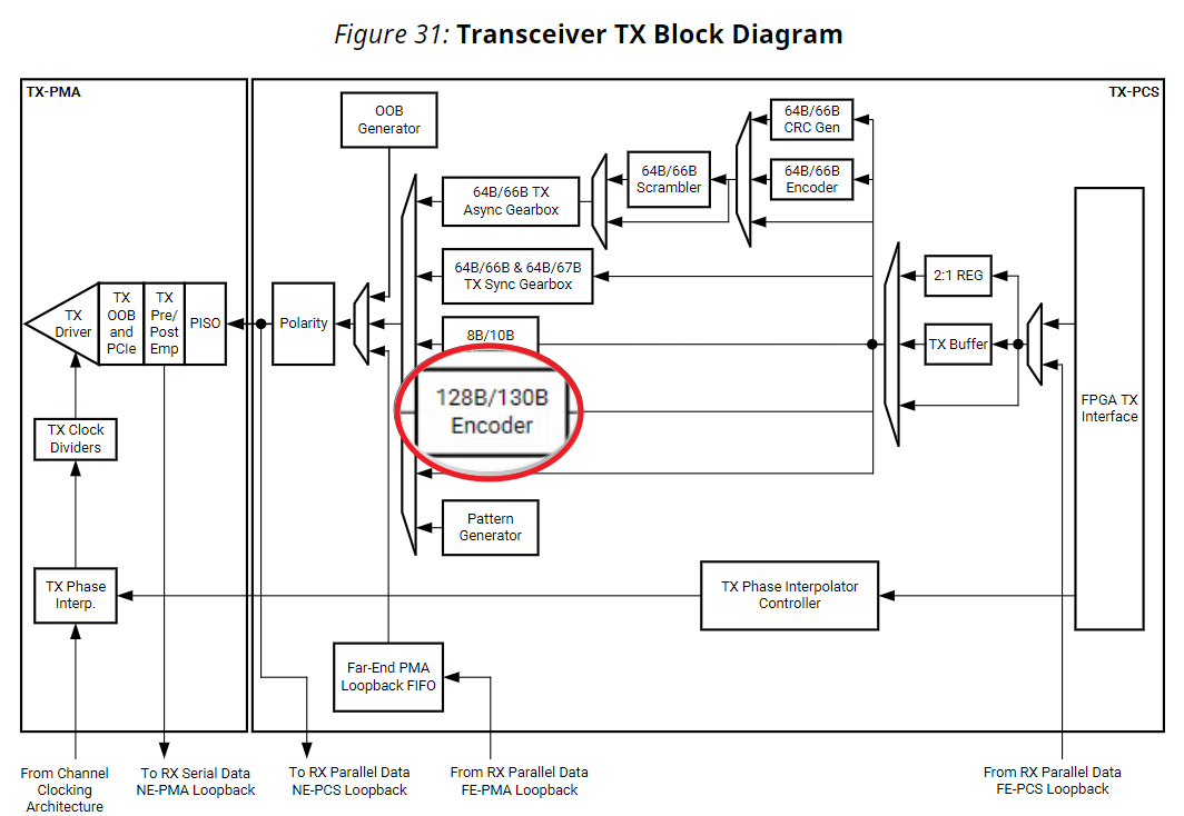 AM002 문서의 Figure 31을 보면 128B/132B가 아닌 128B/130B임을 확인할 수 있으며, 128B/130B는 PCI Express ( PCIe, PCI-e, Peripheral Component Interconnect Express )를 위하여 필요한 부분입니다.