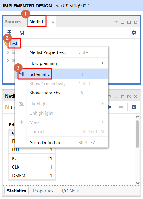 Open Implementation Design에서 아래의 화면과 같이 Schematic을 클릭합니다.