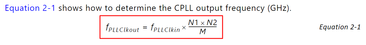 CPLL output frequency = Reference input clock frequency x ( ( N2 x N1 ) / M )