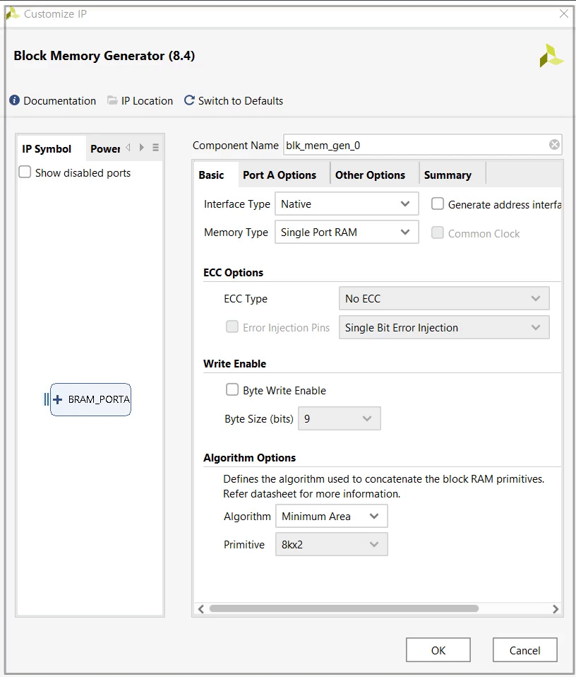 다음과 같이 IP Catalog에서 Block Memory Generator를 실행합니다.