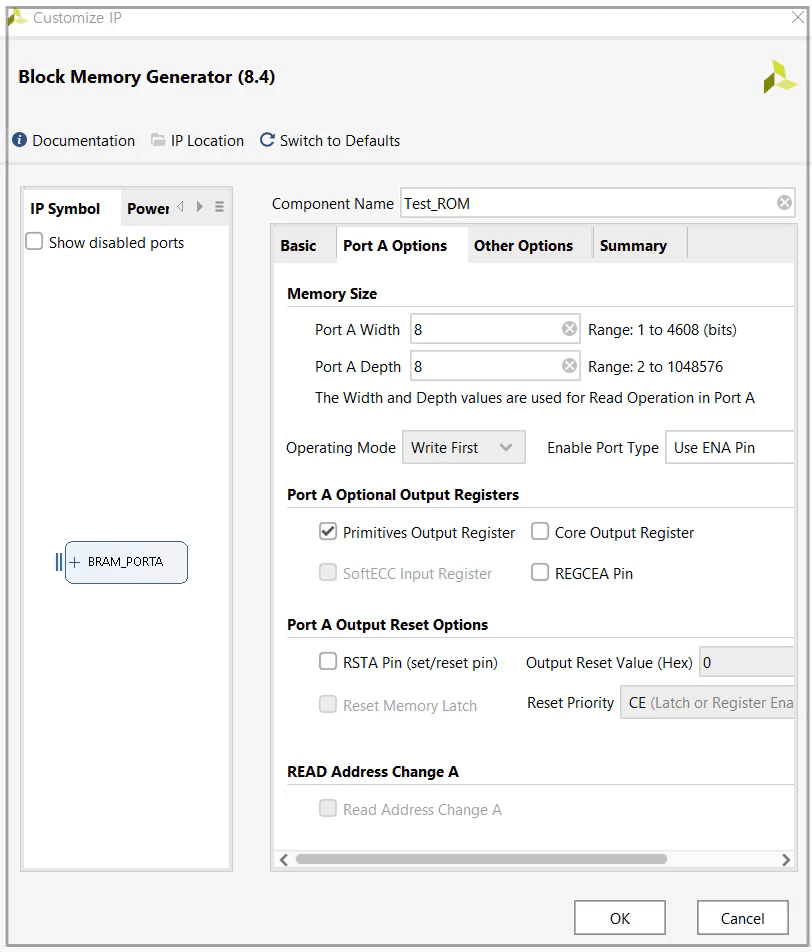 Customize IP 윈도우에서 Component Name에 "Test_ROM"이라고 기입합니다.