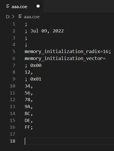 memory_initialization_radix = 16은 Hex를 의미합니다.