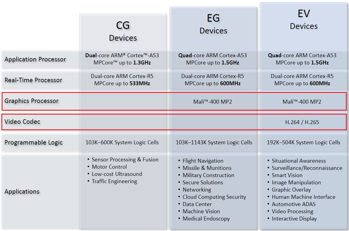 Zynq® UltraScale+™ MPSoCs는 3 종류의 Devices로 나누어 집니다.