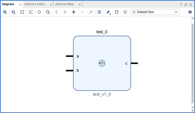"Add Module to Block Design"을 실행하면 다음과 같이 Block Design에 "test.v" 파일의 module을 확인할 수 있습니다.