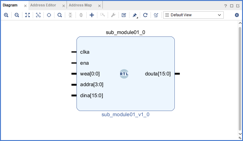 "Add Module to Block Design"을 실행하면 다음과 같이 Block Design에 "sub_module01.v" 파일의 module을 확인할 수 있습니다.