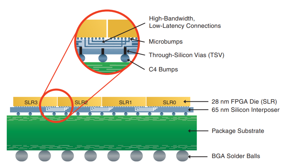 Stacked silicon interconnect (SSI) technology를 사용한 2개 이상의 Supper Logic Region (SLR)을 가지는 Xilinx FPGA Devices는 3D ICs라고 합니다. 반면에 하나의 Supper Logic Region (SLR)을 가지는 Xilinx FPGA Devices는 monolithic(단일로 만들어진) devices라고 합니다.