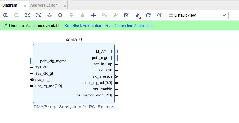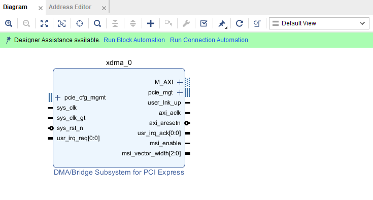 다음과 같이 Block Design에서 DMA/Bridge Subsystem for PCI Express의 Symbol을 확인할 수 있습니다.