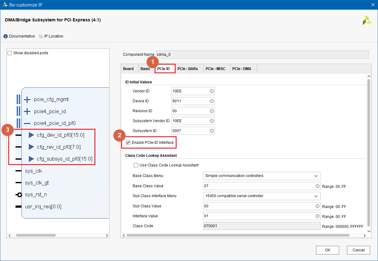 "Enable PCIe-ID Interface" option of DMA/Bridge Subsystem