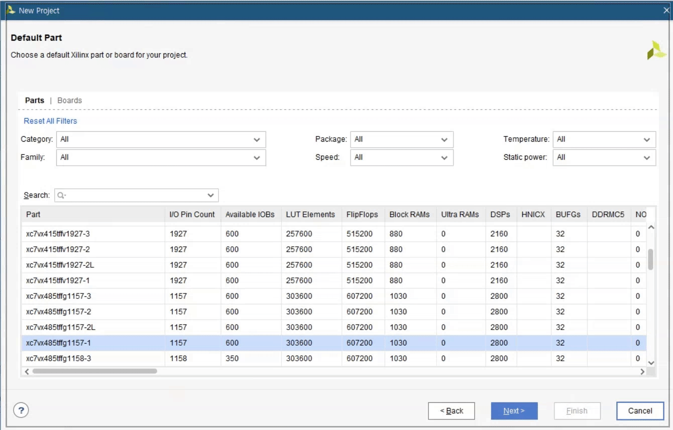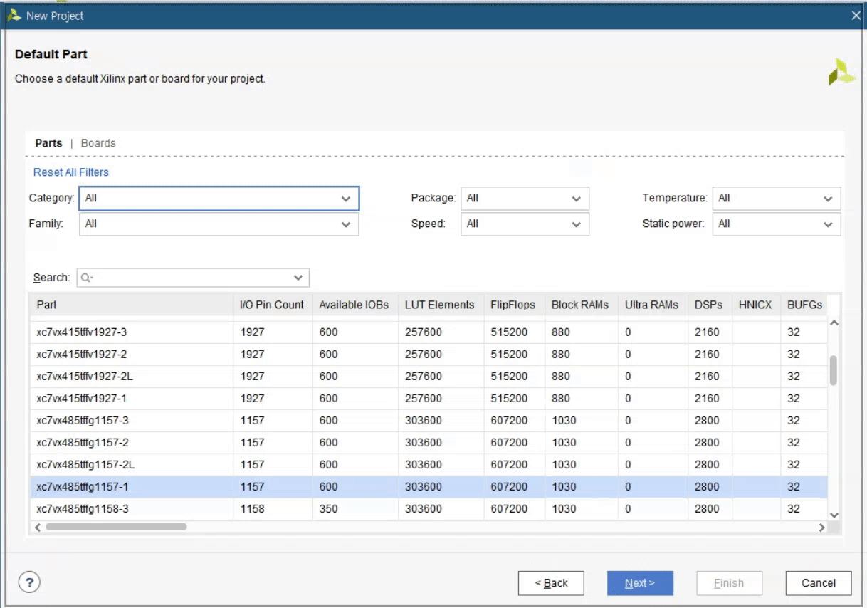 Vivado TCL console에 위 command를 입력한 후, New Project를 진행하면 다음과 같이 "u50" Alveo Card가 확인됨을 알 수 있습니다.